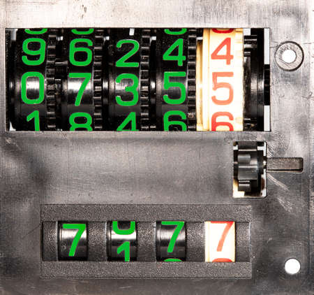 Old telephone switchboard with plastic buttons. Retro, dirty keys