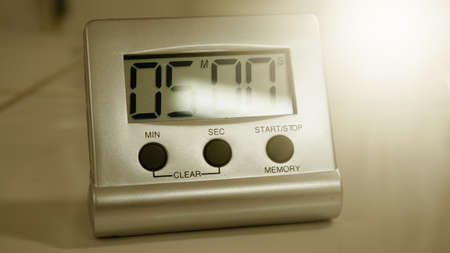 20 Minutes - A Macro Of A Flat Red Kitchen Egg Timer In Sepia