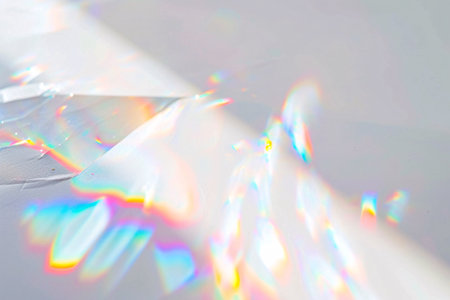 AI Generated. Abstract iridescent crystal light rays reflection background