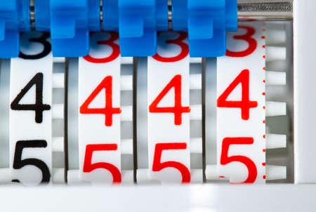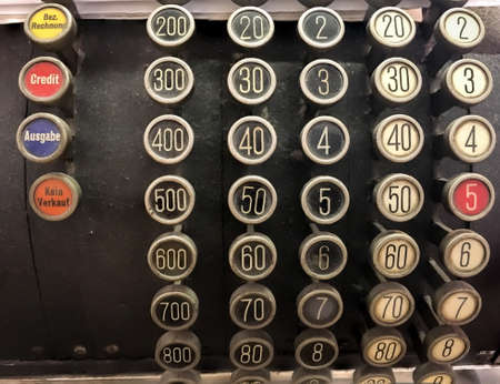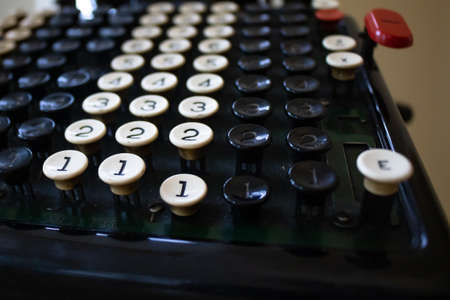 Old telephone switchboard with plastic buttons. Retro, dirty keys