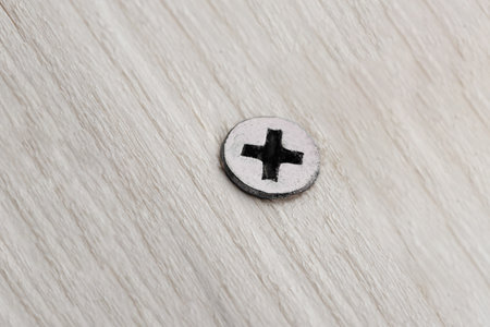 A detailed macro photograph captures the precise engineering of a single Phillips head screw, firmly set into a dark, textured surface.