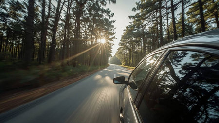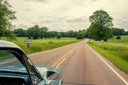 Driving on a summer road trip, freedom and adventure ahead generated by artificial intelligence