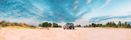Renault Duster or Dacia Duster SUV in countryside landscape. Duster produced jointly by French manufacturer Renault and its Romanian subsidiary Dacia since 2010.