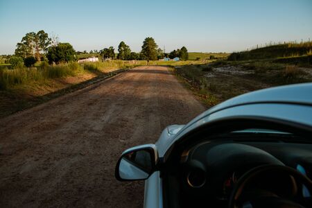 nature view from the back of the car with sunset light