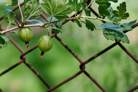 Green berries of a gooseberry. Gooseberry fruits. Green gooseberries.