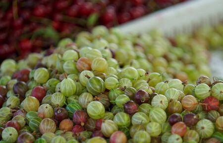 Ripe gooseberry strewn with dense background, bright berry background, space for text