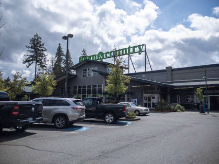 Mill Creek, WA USA - circa May 2022: Street view of the front of a Town and Country grocery store on a bright, sunny day.