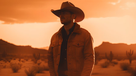 Confident female cowboy, wearing a hat and leather jacket, smiles in a rustic outdoor environment, embodying the spirit of western culture and lifestyle