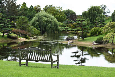 Beautiful scenery of Chatuchak Park Bangkok, Thailand lake water full of lilas lotus bench on the bank