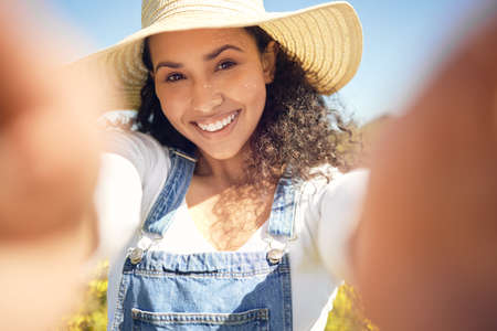 A young woman in a straw hat mysteriously looks up at the sky, expressive close-up eyes.