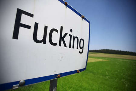 Color image of the traffic sign at the entrance in the village of Fucking, Austria. Actual shot, no added text.