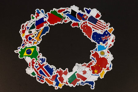 Circle of Nations. International Unity in Country Flag Map Shapes on Black Background.