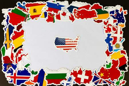 USA Map Surrounded by Global Country Map Flags