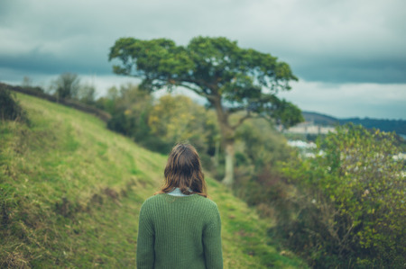 Never knows what is behind the horizon? Woman hiking on road. Getting out of your comfort zone concept