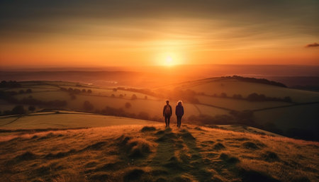 Romance backlit by sunset, two embracing lovers generated by artificial intelligence