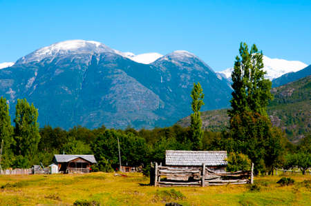 Chilean landscape with mountains and fields near Vicu?a