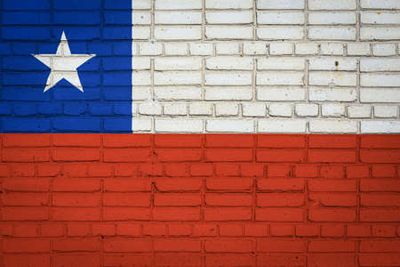 National flag of Chile depicting in paint colors on an old brick wall. Flag banner on brick wall background.