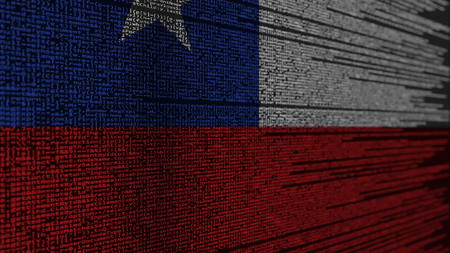 Program code and flag of Chile. Chilean digital technology or programming related 3D rendering