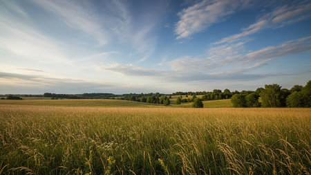Beautiful European Rustic View of a Corn Field ready for Harvest on a Sunny Summer Day