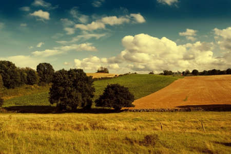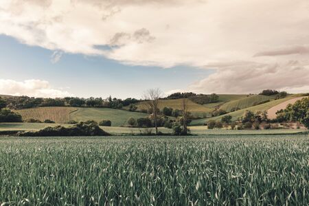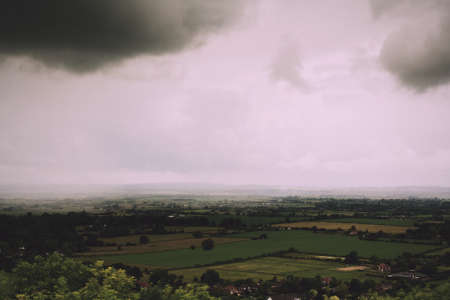 Cloudy view over the Chilterns in Buckinghamshire, England Vintage Retro Filter.
