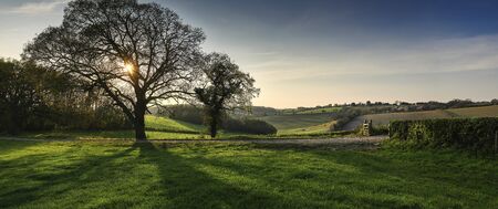 Panoramic view of Oak tree in front of landscape in The Chilterns, England