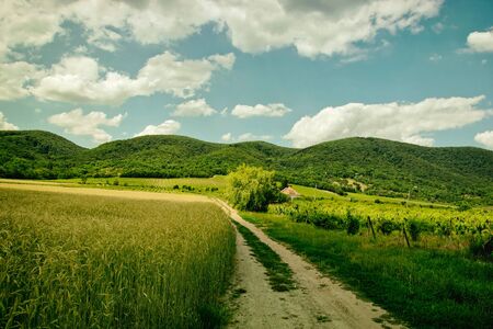 Beautiful hills. Summer panoramas of nature. Euro-trip