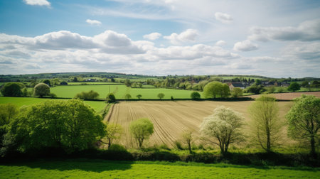 Beauty in nature summer landscape. Countryside view of green fields in England