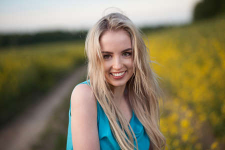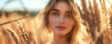 Woman Blonde Hair Field: Sunset Portrait, Summer, Beauty Photography