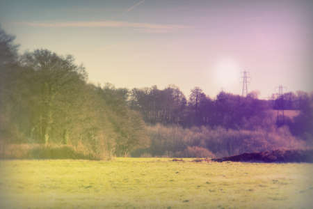 View along a county path in the Chilterns, England Vintage Retro Filter.