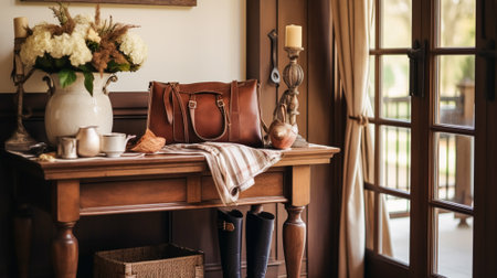 Autumnal hallway decor, interior design and house decoration, welcoming autumn entryway furniture, stairway and entrance hall home decor in an English country house and cottage style idea