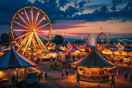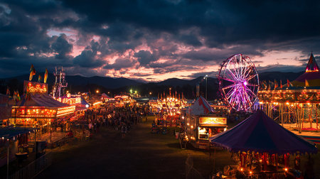 Twilight Festive Spectacle, Colors Come Alive at a Summer Carnival. Generative AI