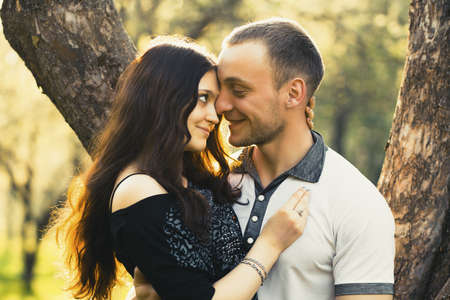 Couple in love. Cute relationship. Man and woman cuddle nature background. Supporting her. Family love. Devotion and trust. Together forever we two. Love story. Romantic relations. True love
