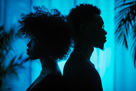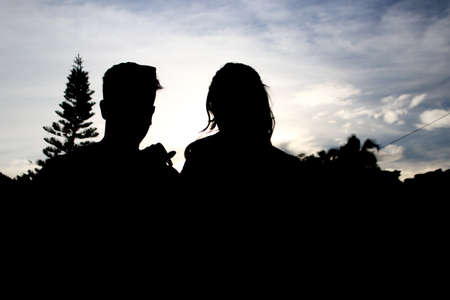 Outline of loving woman putting her head onto shoulder of man sitting next to her