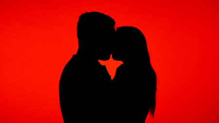 Silhouette of a Couple Kissing Against a Vibrant Red Background