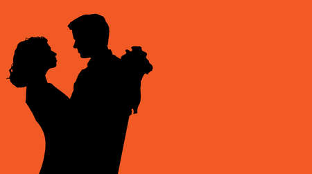 Silhouettes of a man and a woman on an abstract creative background. Art collage. The cinematic concept is retro style.