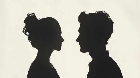 Silhouettes Man and woman potrait profile.white background, Generate Ai