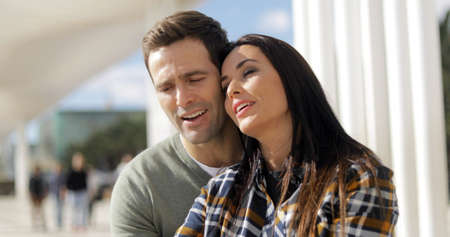 Smiling couple in love outdoors.