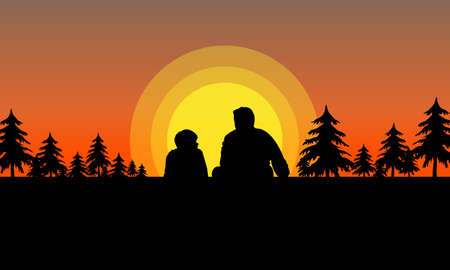 Silhouette of a loving couple in love at sunset. Vector illustration.