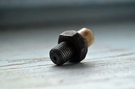 Close up of a nut and bolt on a blurred background. Selective focus.