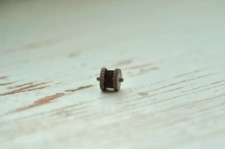 Close-up of the gear shaft of the motor for the ship. Metal, teeth, technology.