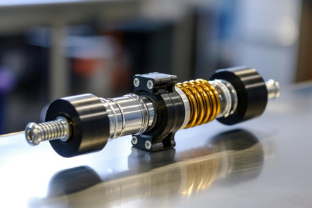 A closeup of a shock absorber on a train showcasing its importance in providing a smooth and stable ride for passengers
