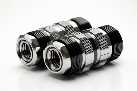 A realistic image of Hose Fittings on white background made by generative Ai.