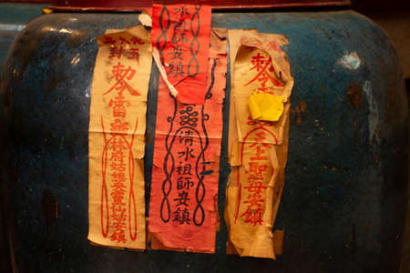 PATTANI, THAILAND - August 16 : Soul Jars keeping ghost in Chinese Shrine for thai people travel visit and respect pray at Pattani city on August 16, 2019 in Pattani, Thailand