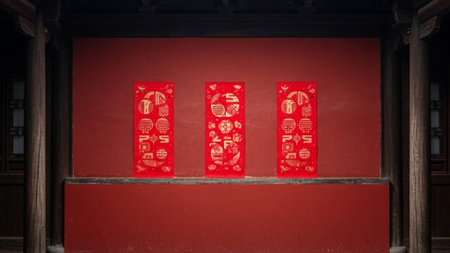 Chinese New Year Symbols. Red envelopes and decorations for prosperity and good luck.