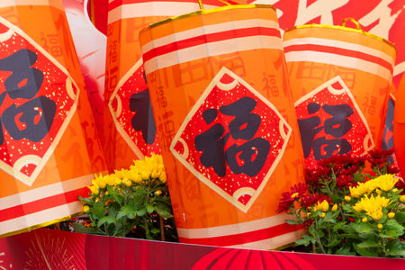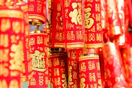 firecracker shape Chinese New Year decorations at horizontal composition translation of the characters are fortune