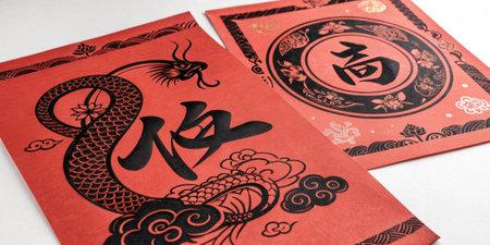 This image captures decorative red envelopes adorned with intricate gold designs, perfect for traditional celebrations and cultural events, symbolizing joy and prosperity.