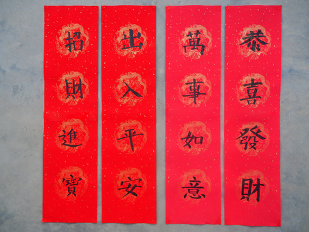 4 Chinese calligraphy couplets for wealth, riches, prosperity and safe journey