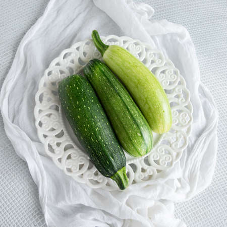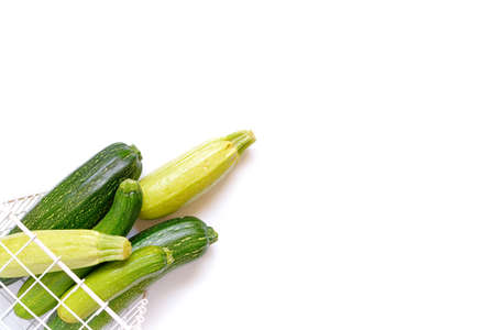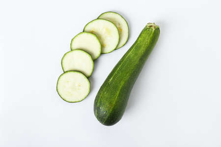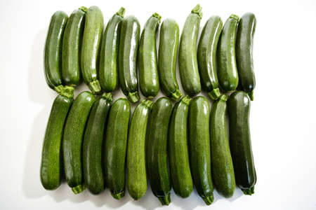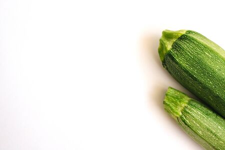 Green zucchini on a white background. The harvest of zucchini.Green vegetables. Vegetarian food.