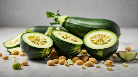 zucchini on yellow background, minimal, fresh vegetables, creative composition
