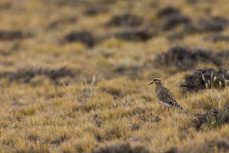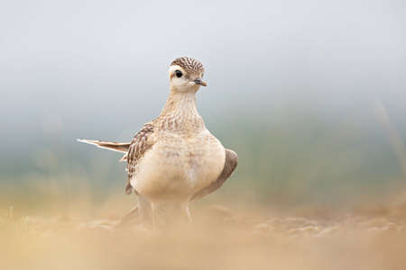 Portrait of a juvenile Eurasian dotterel (Charadrius morinellus) foraging in the Netherlands